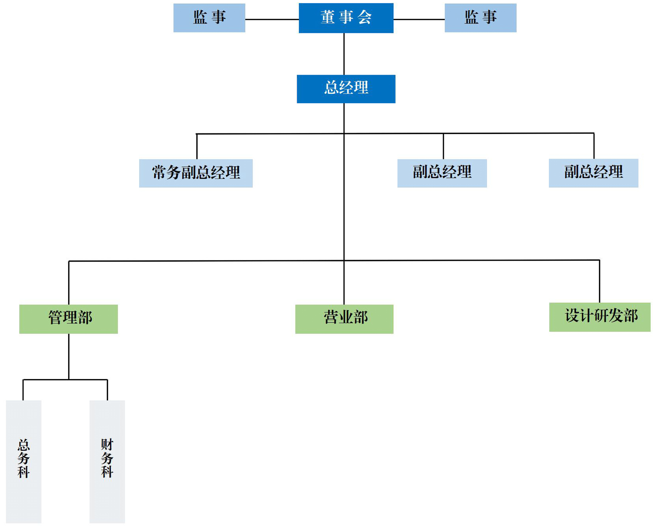 公司下設(shè):管理部、財(cái)務(wù)部、營(yíng)業(yè)部、海外營(yíng)業(yè)部、品質(zhì)部、采購(gòu)部、工程部、設(shè)計(jì)部共8個(gè)部門(mén)。
