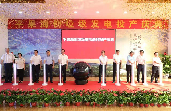 ?七月是生機盎然的季節,七月承載著火熱的希望,在這美好的季節里,2021年7月30日9時18分,海螺創業平果海創在主廠房咖啡廳隆重舉行了平果海創垃圾焚燒發電一期項目進料投產慶典。