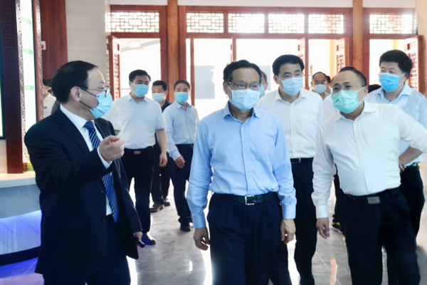 夏條綠已密,荷風送香氣。2020年4月21日下午4:58分左右,廣西壯族自治區黨委副書記、自治區人民政府主席陳武一行蒞臨興業海創視察調研,陪同調研的有自治區人民政府秘書長、辦公室主任黃洲,生態環境廳廳長檀慶瑞,自治區發改委、工信廳、農業農村廳相關負責人,玉林市委書記黃海昆及副書記、代市長白松濤,興業縣縣委書記陸金學及縣長楊開源等。
