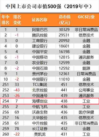 海螺創(chuàng)業(yè)以總市值438億元人民幣再次入圍中國(guó)上市公司500強(qiáng)名單,位列254位,排名提升了7位