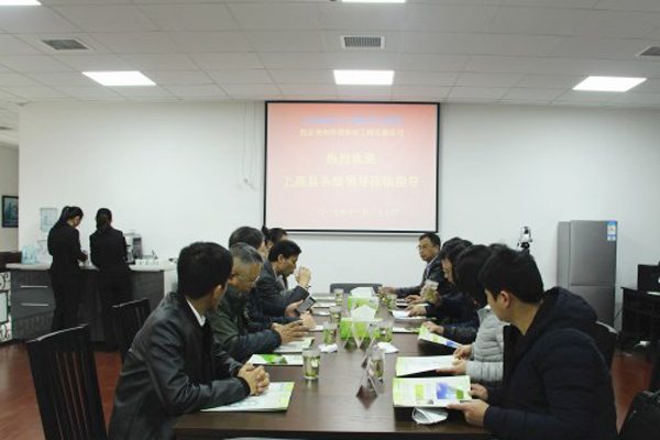 ? ? 11月27日,上高縣常委、副縣長章偉新率宜春市環保局環評科科長朱衛生、上高縣辦公室副主任章磊、上高縣環保局局長陳信逞等一行7人,在海螺創業公司安全環保部部長章邦志、上高南方水泥公司總經理劉煌等相關人員的陪同下,到堯柏環保公司進行考察交流。堯柏環保公司總經理王建禮熱情接待了到訪人員。