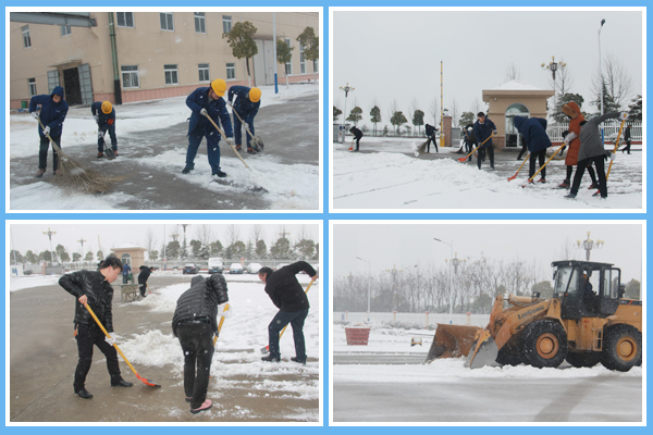 ? ? 根據應急預案要求,結合現場實際情況,上午8點,各部門員工冒嚴寒、踏風雪,攜帶清掃工具,開展全廠區掃雪行動,大家熱情高漲、干勁十足、分工明確,有的鏟雪、有的掃雪、有的堆雪,重點清掃主干道路及公共場所內的積雪,方便員工工作生活出行。
