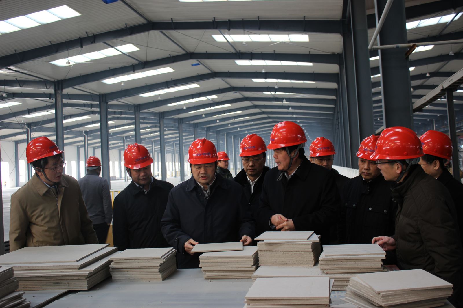 ? ? 李劍同志介紹說:歡迎方副省長再次來亳州海創(chuàng)新材料公司調(diào)研,您現(xiàn)在看到的是公司一期生產(chǎn)線。海螺創(chuàng)業(yè)上市成功后,在亳州產(chǎn)業(yè)園區(qū)投入20多億港幣成立亳州海創(chuàng)新材料公司,分兩期建設(shè)大型綠色板材生產(chǎn)基地,其中一期工程主要建設(shè)2條纖維水泥平板項目及其配套工程。目前一期A線已于9月15日正式投產(chǎn),首批合格產(chǎn)品于10月27日成功投放市場,整體生產(chǎn)運(yùn)行狀況良好。