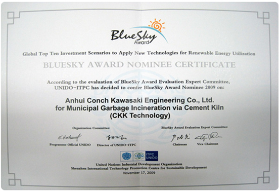 海螺創(chuàng)業(yè)利用水泥窯處置生活垃圾技術(shù)獲得聯(lián)合國“藍天獎”提名