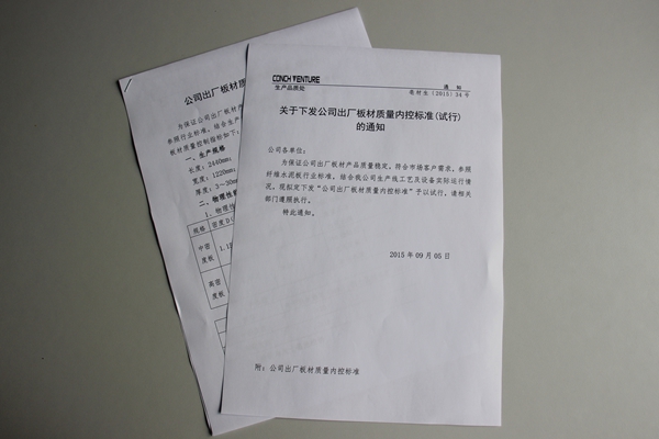 下發《出廠板材質量內控標準》