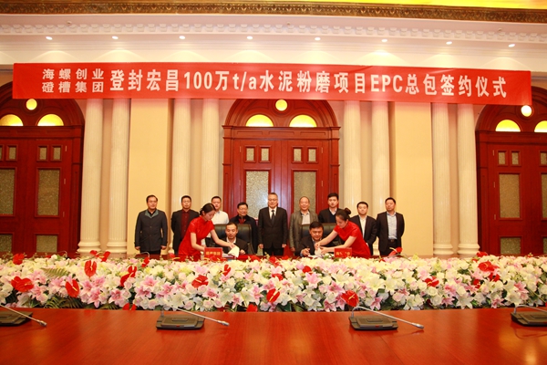 ? ? 經過前期反復磋商,11月19日下午,《登封市宏昌水泥有限公司100萬t/a水泥粉磨系統技改擴建項目EPC工程總承包協議》在蕪湖海螺國際會議中心正式簽署,海螺創業副總經理李大明與磴槽集團副總經理袁少輝代表雙方簽署協議。磴槽集團總經理袁占軍、總顧問于孟凡;海螺創業董事會秘書疏茂、財務部副部長陳興強等出席了簽約儀式。
