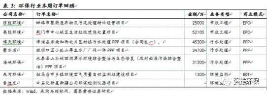 ? ? 本周板塊訂單回顧:本周環保公司合計新增訂單30.63億元,其中,新增訂單金額最大三家依次為博天環境(15.04億元)、偉明環保(2.65億元)、東方園林(2.49億元)。