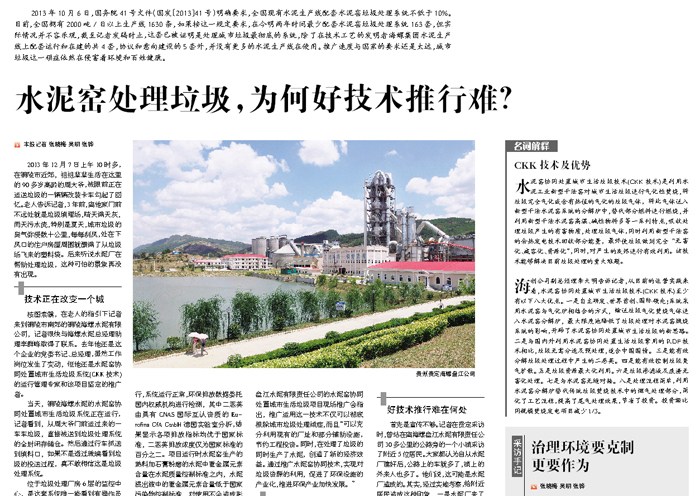 ????貴定縣副縣長黃智勇和原住建局局長蘇穎是貴定水泥窯協(xié)同處置城市生活垃圾專案的實(shí)踐者和見證人,他們說,在貴州都說這個(gè)專案好,但是就是因?yàn)槿鄙賴艺哐a(bǔ)貼,很多地方依然嚮往垃圾焚燒發(fā)電技術(shù),這可是能發(fā)電,又能拿到國家真金白銀的專案,所以推廣起來還是有一定難度。