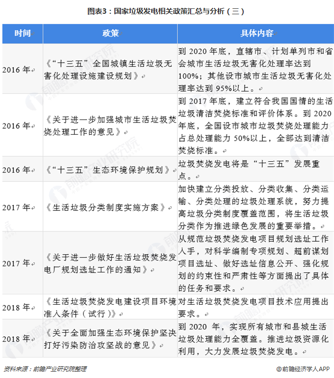 ? ? 2018年6月,國務院發布《關于全面加強生態環境保護堅決打好污染防治攻堅戰的意見》,提出扎實推進凈土保衛戰,加快推進垃圾分類處理。到2020年,實現所有城市和縣城生活垃圾處理能力全覆蓋,基本完成非正規垃圾堆放點整治;直轄市、計劃單列市、省會城市和第一批分類示范城市基本建成生活垃圾分類處理系統。推進垃圾資源化利用,大力發展垃圾焚燒發電。