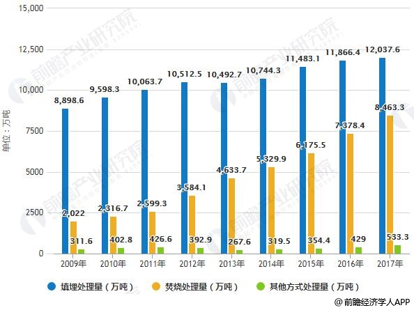 ? ? 2009年,我國生活垃圾無害化處理量為11232.2萬噸,生活垃圾無害化處理率為71.4%。截止至到2017年,我國生活垃圾無害化處理量為21034.2萬噸,生活垃圾無害化處理率達到97.7%。