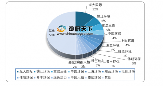 截至2018年6月垃圾焚燒發電行業市場份額統計
