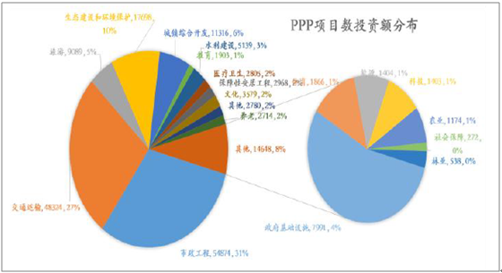 ? ? 市政、交通PPP入庫項(xiàng)目占比靠前:2014年以來,國家在基礎(chǔ)設(shè)施領(lǐng)域全面推廣PPP模式,出臺(tái)了大量的PPP政策,PPP市場(chǎng)高速發(fā)展。據(jù)全國PPP綜合信息平臺(tái)項(xiàng)目庫第8期季報(bào)數(shù)據(jù),截至2017年9月末我國PPP項(xiàng)目總?cè)霂鞌?shù)量14220個(gè),總投資17.78萬億元,較上期季報(bào)發(fā)布數(shù)據(jù)(截止2017年6月末)環(huán)比增長8.7%、較去年同期水平(截止2016年9月末)同比增長42.7%;本期項(xiàng)目綜合落地率為40.61%,較上期發(fā)布數(shù)據(jù)環(huán)比增長3.2pct,較2016年同期水平同比增長14.6pct,PPP入庫項(xiàng)目金額、落地率均再創(chuàng)新高。