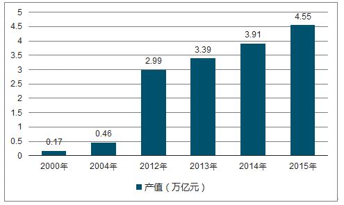 2000-2015年中國環保行業產值情況