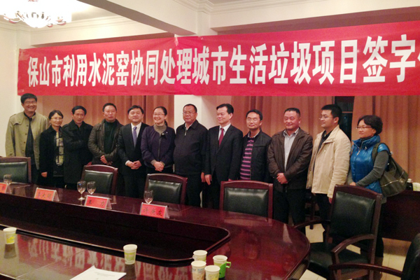 ??? 2014年1月27日下午,云南省保山市人民政府、保山市隆陽區人民政府、蕪湖海創實業有限責任公司、保山海螺水泥有限責任公司在云南省保山市隆陽區政府大樓正式簽署了《云南省保山市利用水泥窯協同處理城市生活垃圾項目合作協議》,保山市委常委、副市長王力,副市長、隆陽區委書記耿梅,隆陽區區長段生榮及區各相關部門負責人,海螺創業副總經理李大明,海螺水泥云南區域委員會主任、保山海螺董事長許庚友、總經理朱立學等20余人參加了簽約儀式。
