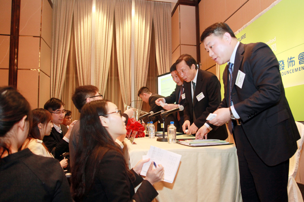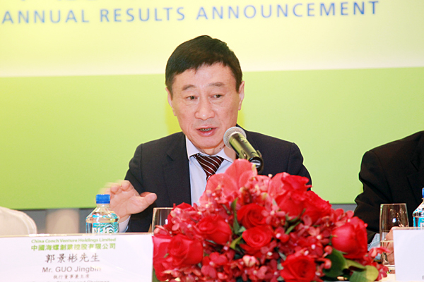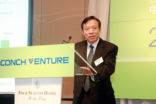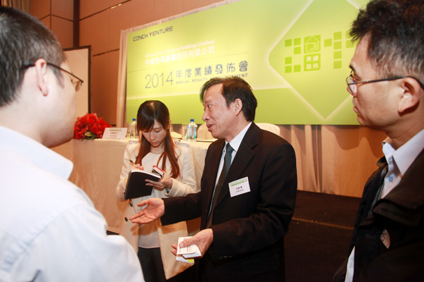The results drew widely market attention once had released. To demonstrate the outstanding operation results and the prospect of each business segment. On 25 March 2015, Conch Venture presented its 2014 annual results in Hong Kong JW Marriot Hotel, chairman Mr Guo Jingbin, execuitve director and general manager Mr Ji Qinying, company secretary Mr Shu Mao and deputy director of financial department Mr Chen Xingqiang attended the meeting. Almost a hundred investors and analysists attended the meeting where no one empty seat was left.